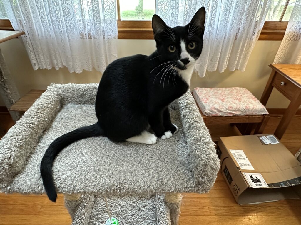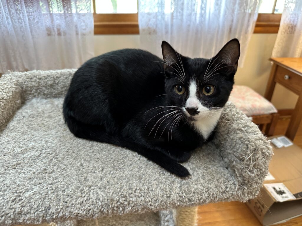 Oakie loves to romp and play catch me if you can with his litter mates. He also gets along well with adult cats and loves attention from people. He likes to use a scratching post. Oakie is a bird watcher, he enjoys viewing them from a cat tree placed at a window.