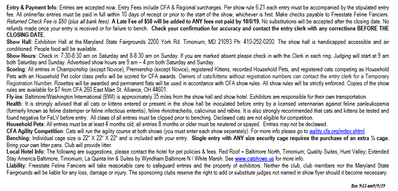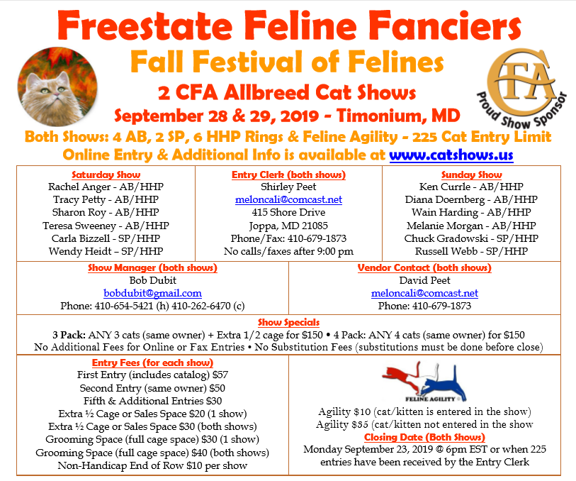LCR will be at the Freestate Feline Fanciers Cat Show