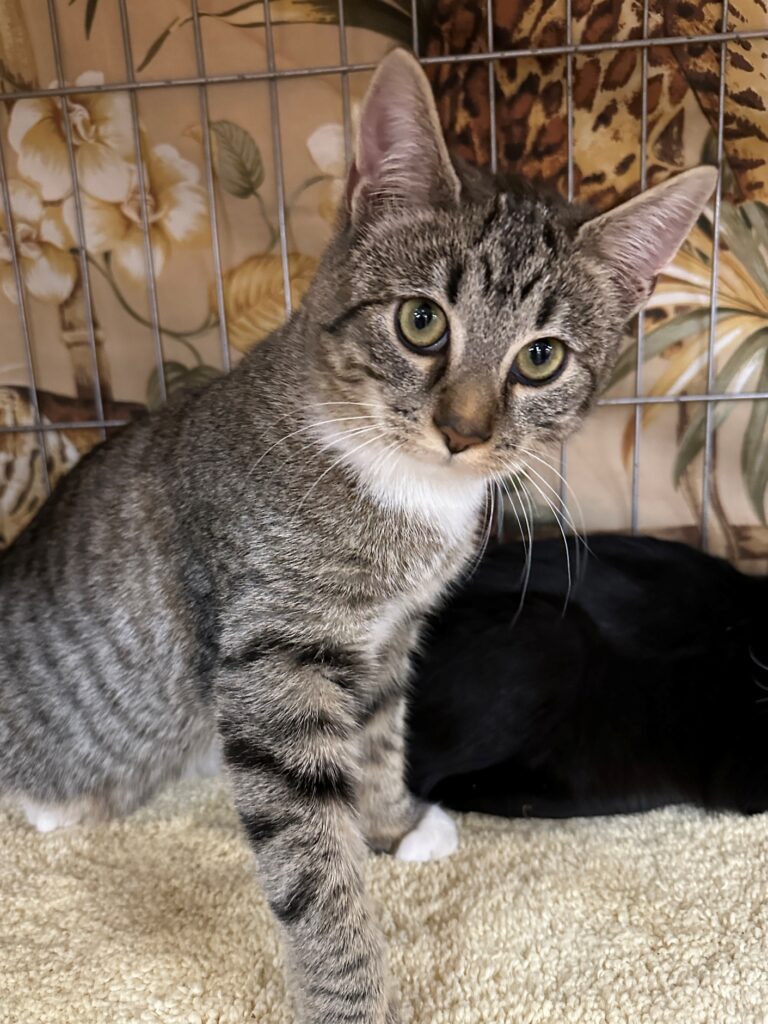 Kelli loves treats and little cat toys like balls, little mice, plastic springs and is particularly fond of wand toys with feathers. She will track and pounce on a laser pointer light, getting lots of exercise and delighting those watching her. Kelli’s litter mate is Kara.