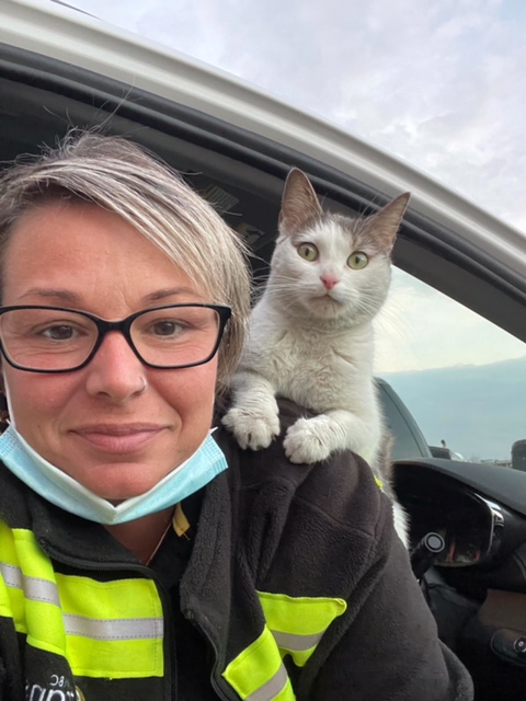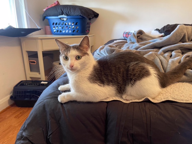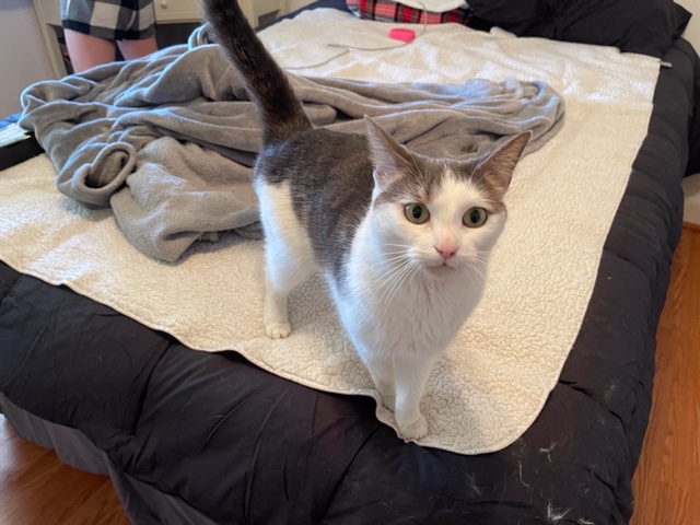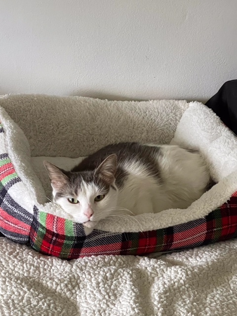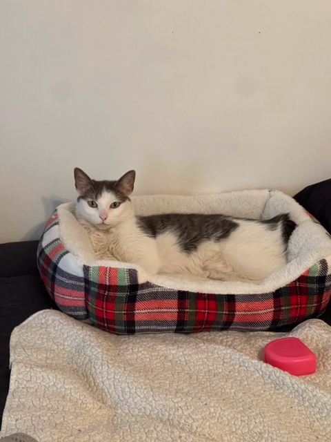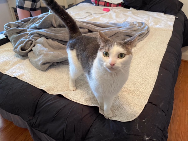 She is very lovable and sassy at the same time. When she wants attention she definitely will let you know. She loves to give kisses even when it the middle of the night. The picture to the left was when she was on the street begging for help.