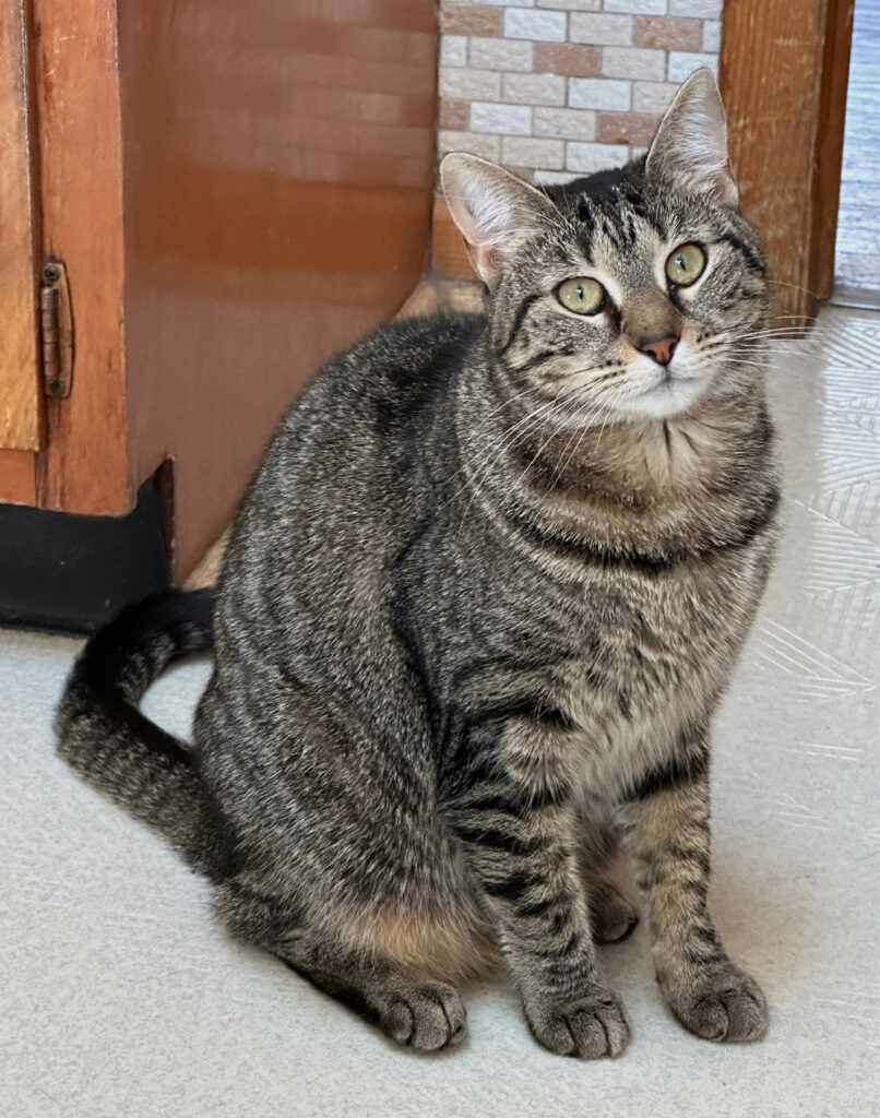 Lucy is a beautiful sweet girl who is looking for her forever home. She loves to play with feather toys, balls, crumpled up paper. Lucy talks when it’s time to eat and she anxiously awaits for her food. She plays well with other cat and kittens. Lucy likes to be by your side but is still shy of being picked up.
